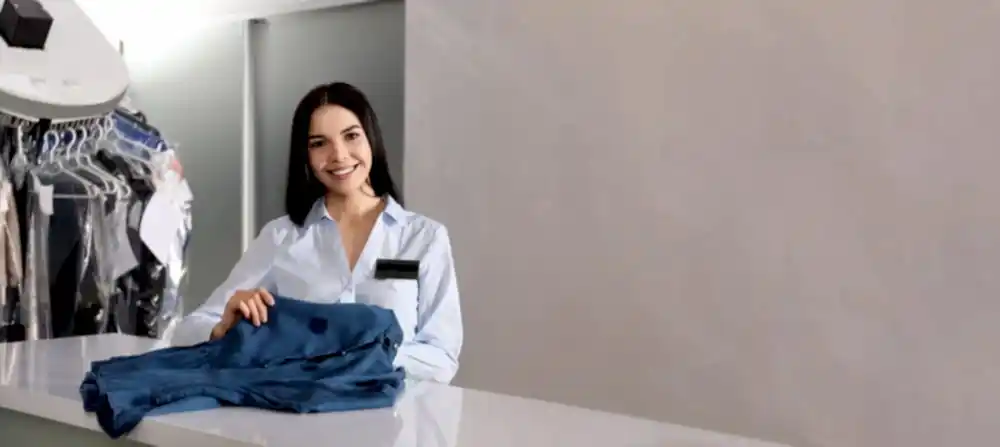 Leke masasında incelenen giysilere (fermuar, çıtçıt, düğme gibi bağlayıcı öğeler dahil olmak üzere) kuru temizleme için müsait olup olmadıklarını anlamak için bir kez daha kontrol yapılır.